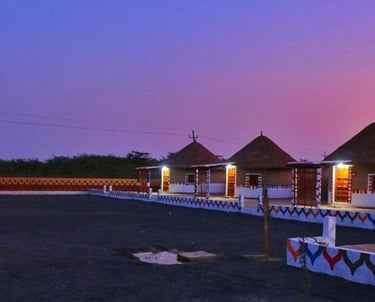 Today, proceed to Hodka/Dhordo,where you have the pleasure to stay in Traditional Bhungas (Mud houses) or Family tent. The day ends with a traditional dinner at the resort and a folk music performance around a bonfire Overnight stay at the resort.